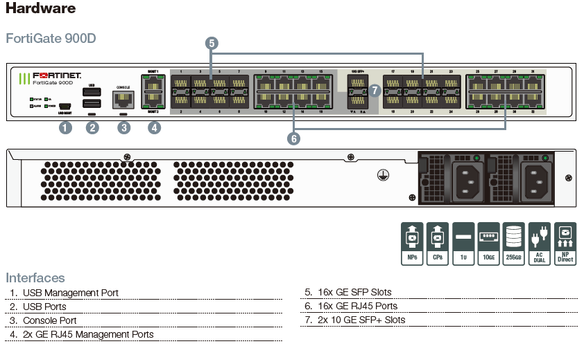 The FortiGate 900D delivers next generation firewall capabilities for mid-sized to large enterprises, with the flexibility to be deployed at the campus or enterprise branch. Protect against cyber threats with security processor powered high performance, security efficacy and deep visibility.