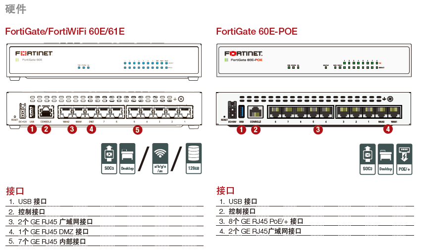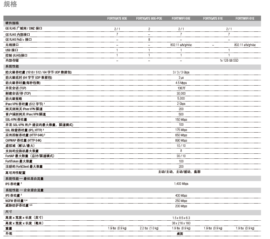 FortiGate 60E系列采用紧凑的无风扇桌面安装形状,是面向企业分支机构和中型企业的优秀网络安全解决方案。将业界领先的安全SD-WAN技术应用于操作简单、价格实惠且易于部署的解决方案中,针对网络威胁提供安全防护。