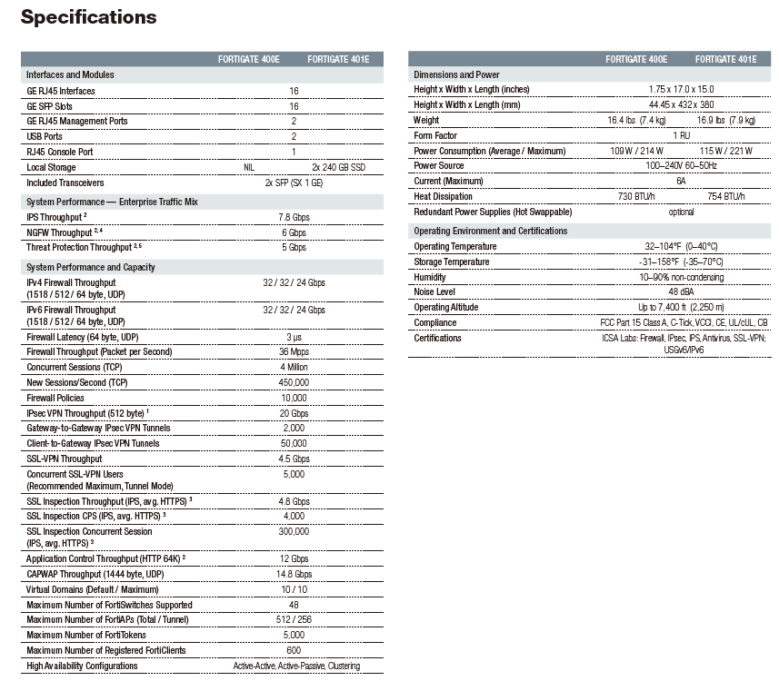 The FortiGate 400E series delivers next generation firewall capabilities for mid-sized to large enterprises,with the flexibility to be deployed at the campus or enterprise branch. Protect against cyber threats with security processor powered high performance, security efficacy and deep visibility.